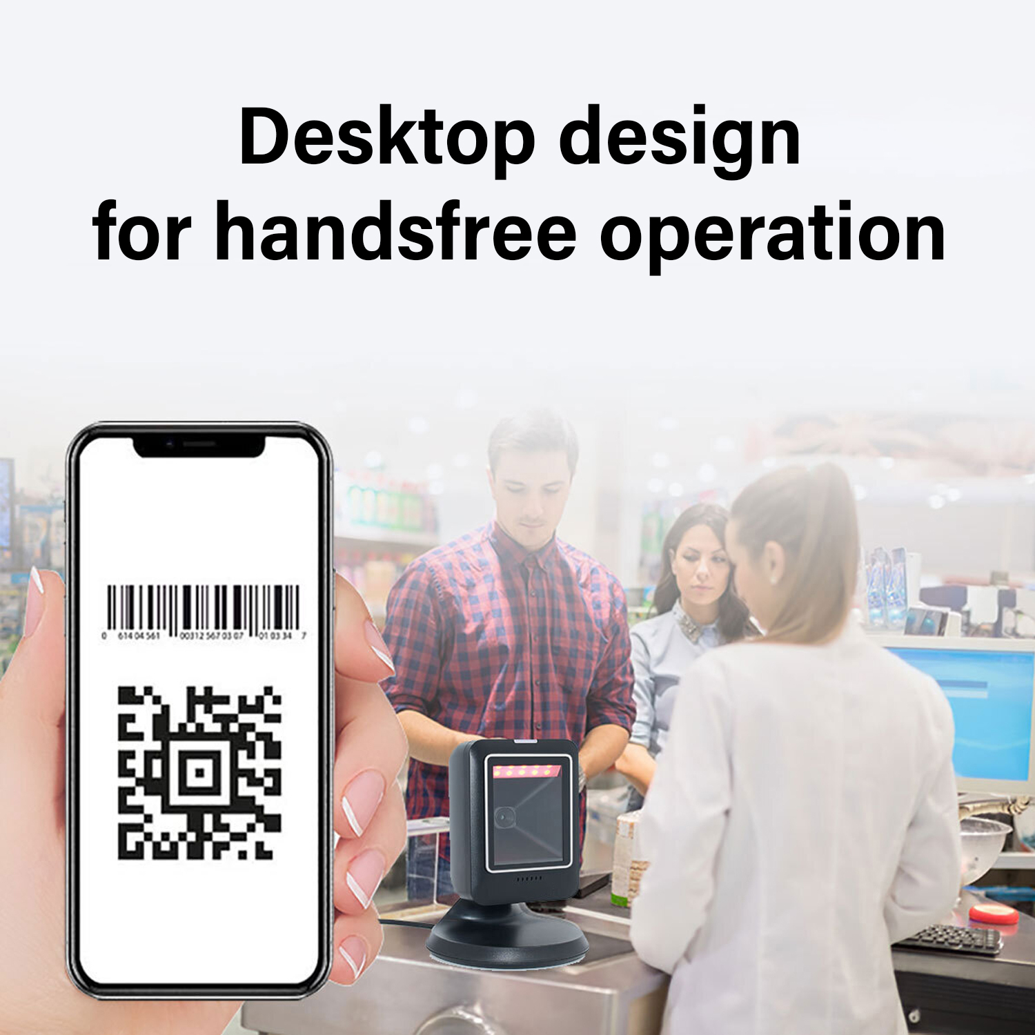 Desktop Barcode Scanner for Barcodes and QR Codes USB Wired Hands-free Operation TR-6300